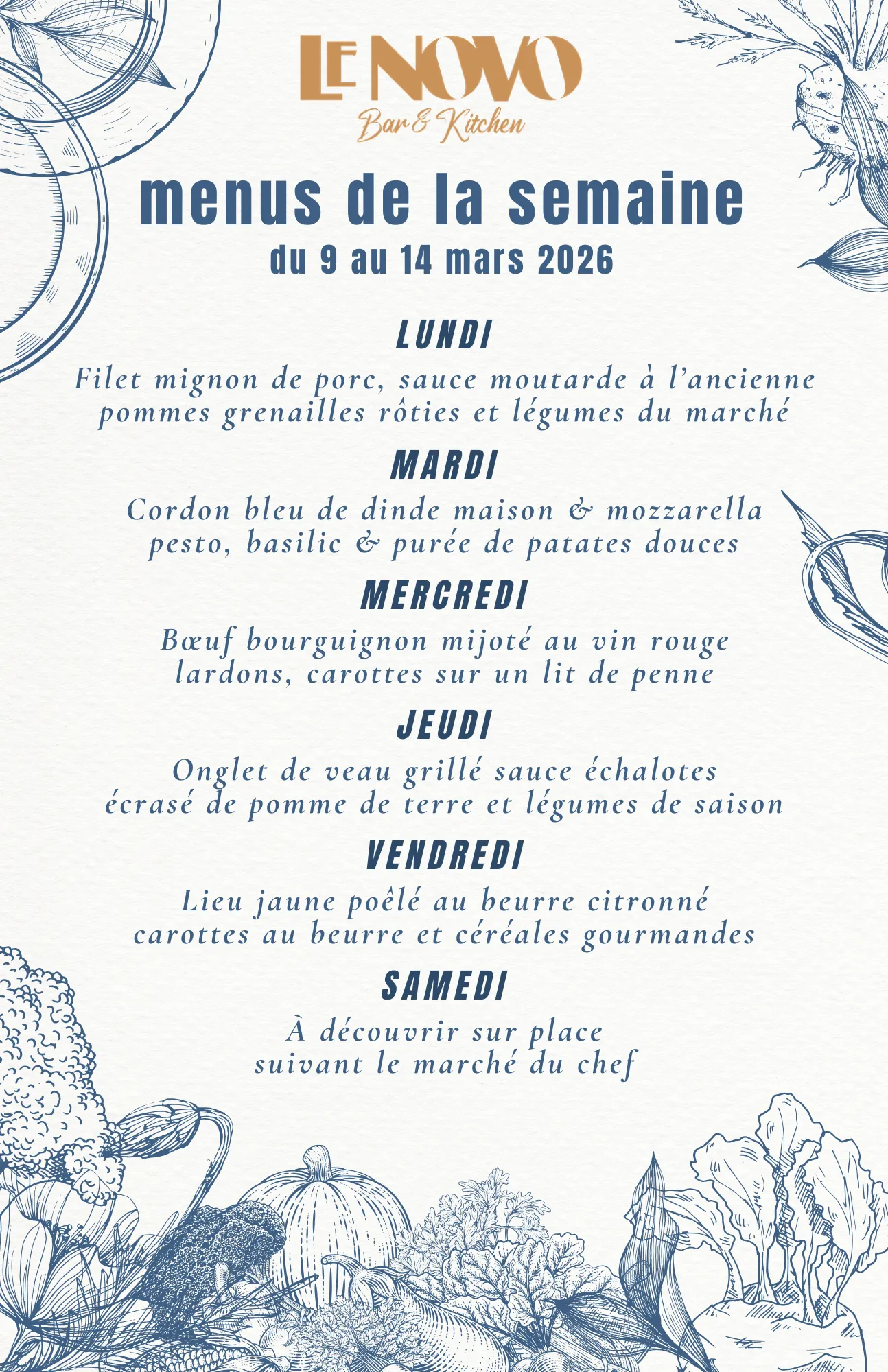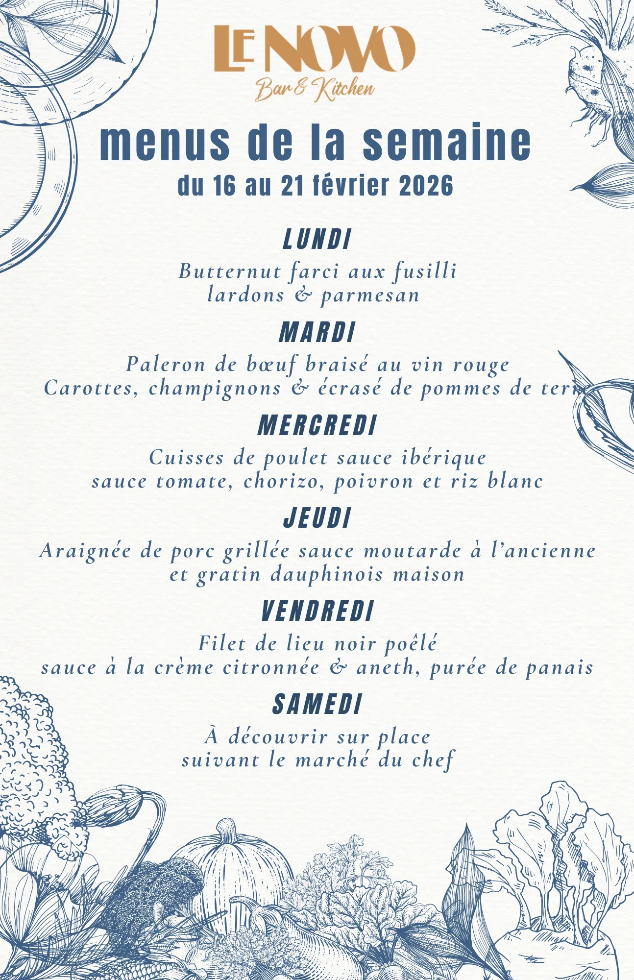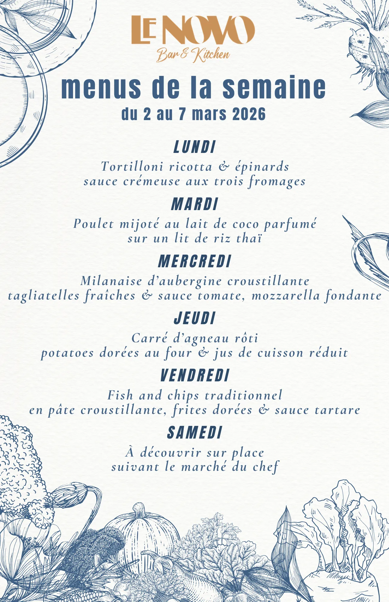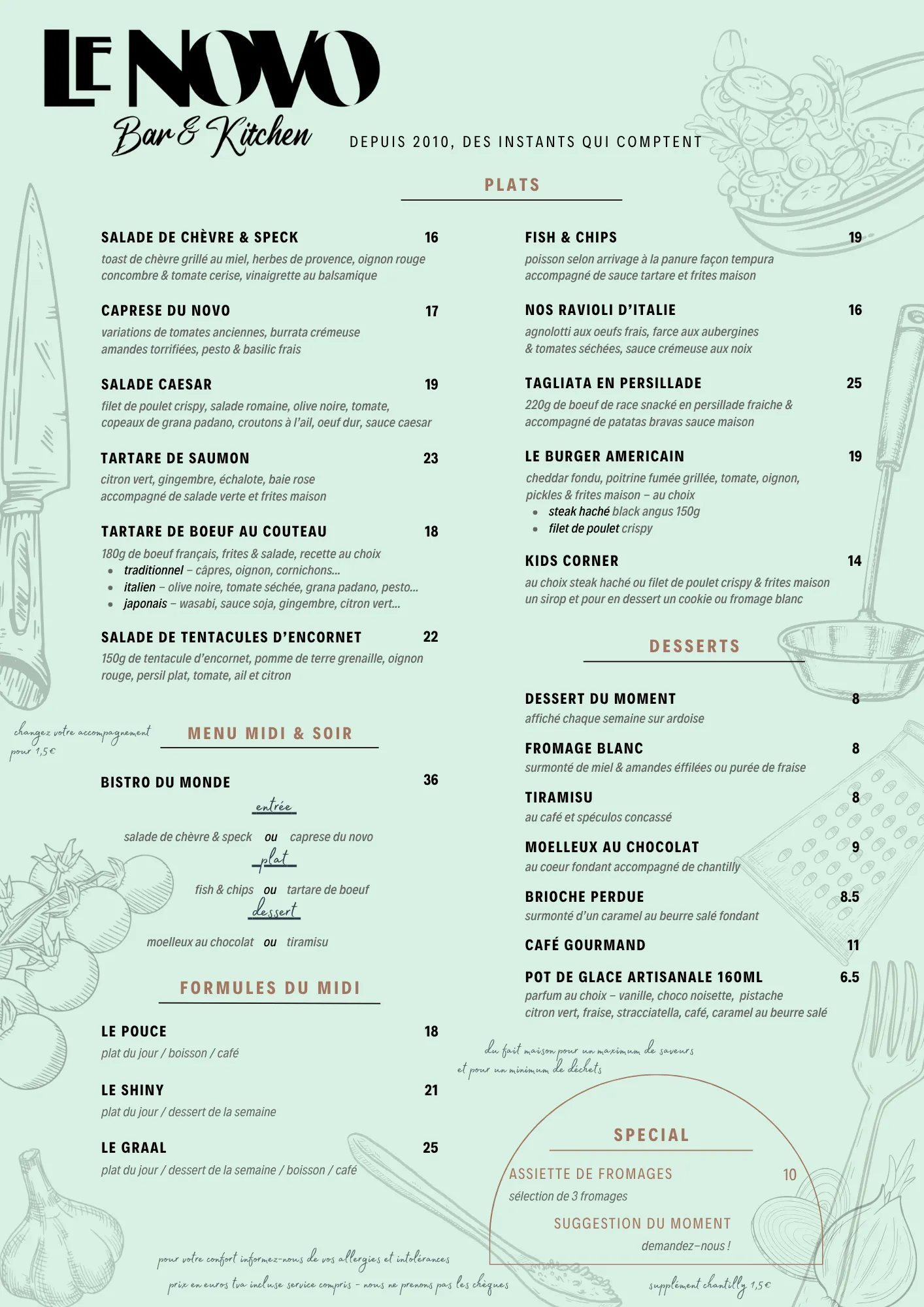 Découvrez notre cuisine traditionnelle inspirée aux saveurs du monde le midi et agrémentée d’une liste de tapas fait maison à partager le soir